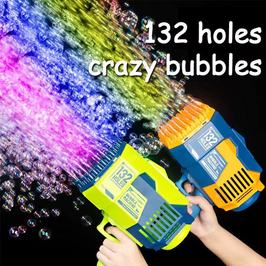 132 Holes Bubble Gun Rocket Soap Bubbles Machine Gun Shape Automatic Bazooka Bubble Blower with Light Toys for Kid Birthday Gift